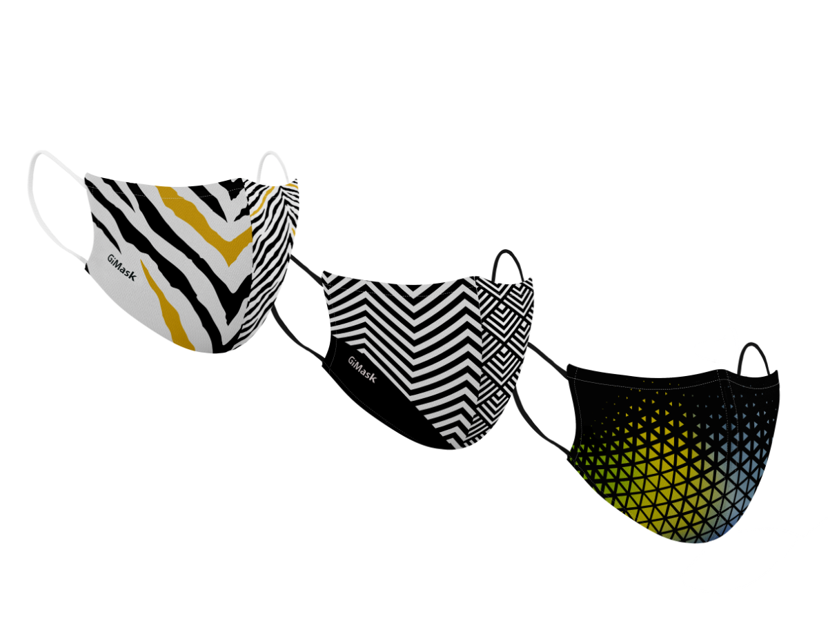 Le maschere protettive GiMask sono realizzate con tre strati di tessuto poliestere lavabile, stampate con inchiostro ad acqua. Un prodotto estremamente confortevole e traspirante adatto ad essere indossato in maniera continuativa. Acquistando il pack potete risparmiare e scegliere di acquistare eventualmente i filtri a parte.